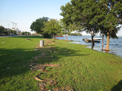 …the lakes are high and the no wake on the lake went lake wide today. That means no skiing in Madison for me. Can’t blame them though, here are a few shots of our ski site from Monday and the area where the crowd would sit is flooded.