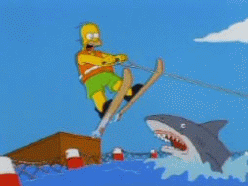 The phrase even has it’s own entry in Wikipedia. And as always (in case you didn’t notice), the Fonze is wearing his black leather jacket (yes, even out on the ocean, he’s wearing his black leather jacket.) Plus, he’s got a yellow banana for flotation. Yes, the little drawing above is correct, he’s rocking a banana. It even comes included with the action figure. Jumping the shark hasn’t been limited to just Fonzie doing it. Even Homer has gotten in on the action…