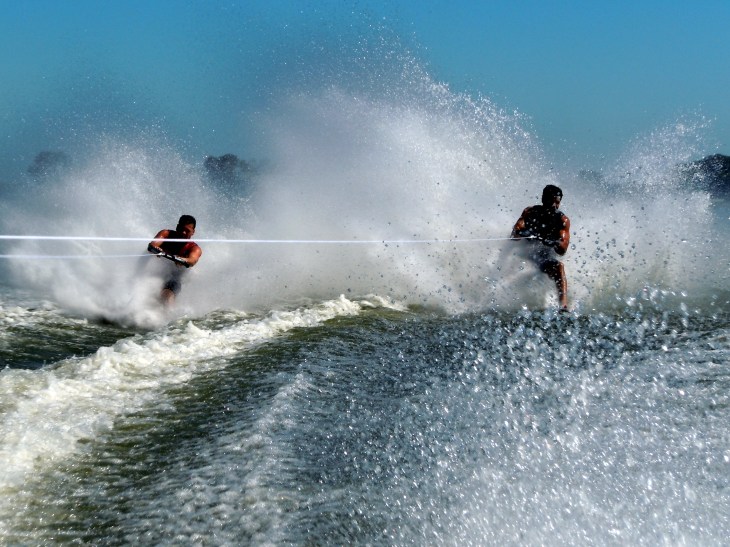 Please excuse the shaky camera in the video. My video editing program actually did a hell of a job making it less shaky (you should have seen it before I processed the video.) The water was rough, the video camera was hand held and I was holding the video camera in my right hand while holding the still camera (that took all the pictures you’ve seen here) with my left, all the while trying my best to keep them both focused on the barefooters, keeping the video camera as steady as possible and taking a steady stream of still pictures in an effort to capture the moment that someone falls. Did I mention I was in a boat that was going 40.5 MPH that was driving in a TIGHT figure-8 pattern. Given the conditions, I think I did pretty well on both accounts. I hope you’ve enjoyed the pictures and like this first video.